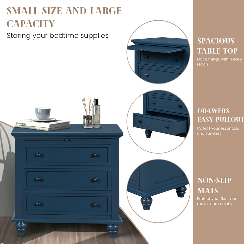 Amazon Com Knocbel 3 Drawer Nightstand With Pull Out Tray Wooden Bedside Night Stand Sofa Side End Table With Legs 110lbs Weight Capacity 28 1 H X 28 W X 16 9 D Brown Home